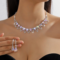 크로스 보더 소스 핫 셀링 크리스탈 컬러풀 목걸이 귀걸이 세트 고급 쇄골 체인 투피스 세트