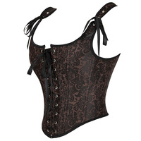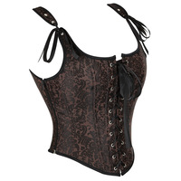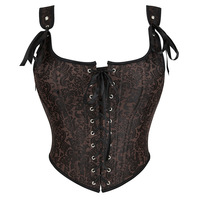 여성을위한 우아한 복고풍 고딕 짠 코르셋 섹시한 다크 브라운 일상 캐주얼 홀터 뷔스티에 파티 클럽 Steampunk 스타일
